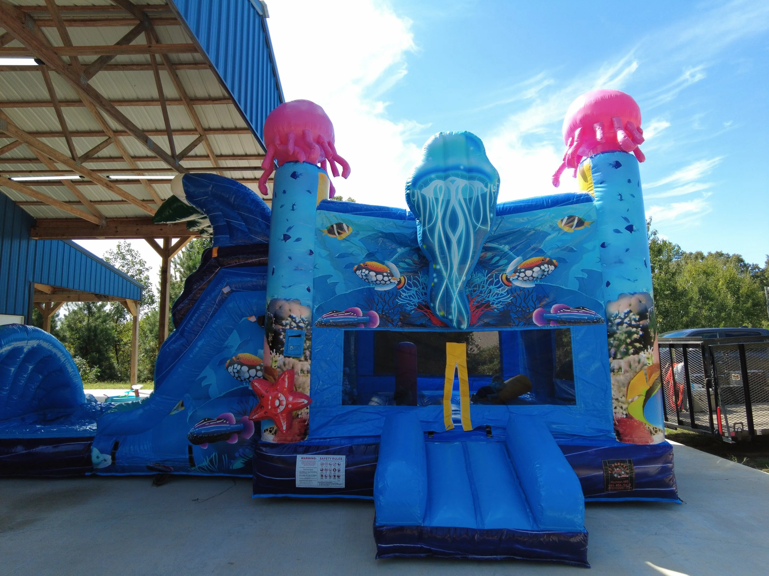 Dive into a world of underwater wonder with our Inflatable Ocean Bounce House Combo! This captivating attraction invites kids to explore the depths of the sea in a safe and imaginative environment, combining bouncing and sliding for an aquatic adventure like no other.